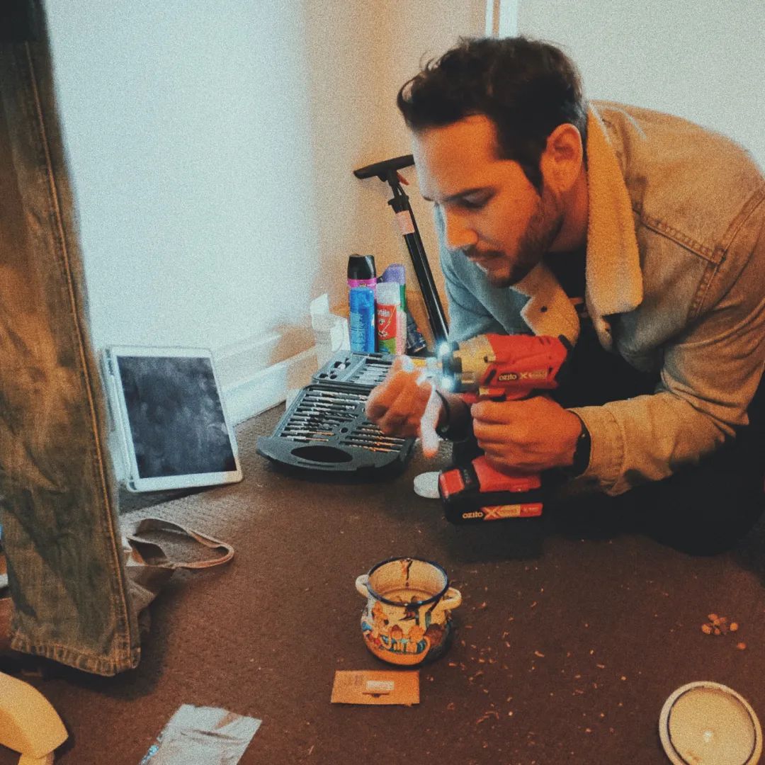 问舍友借的drill还挺好用,嗖嗖就把洞都打好了。
