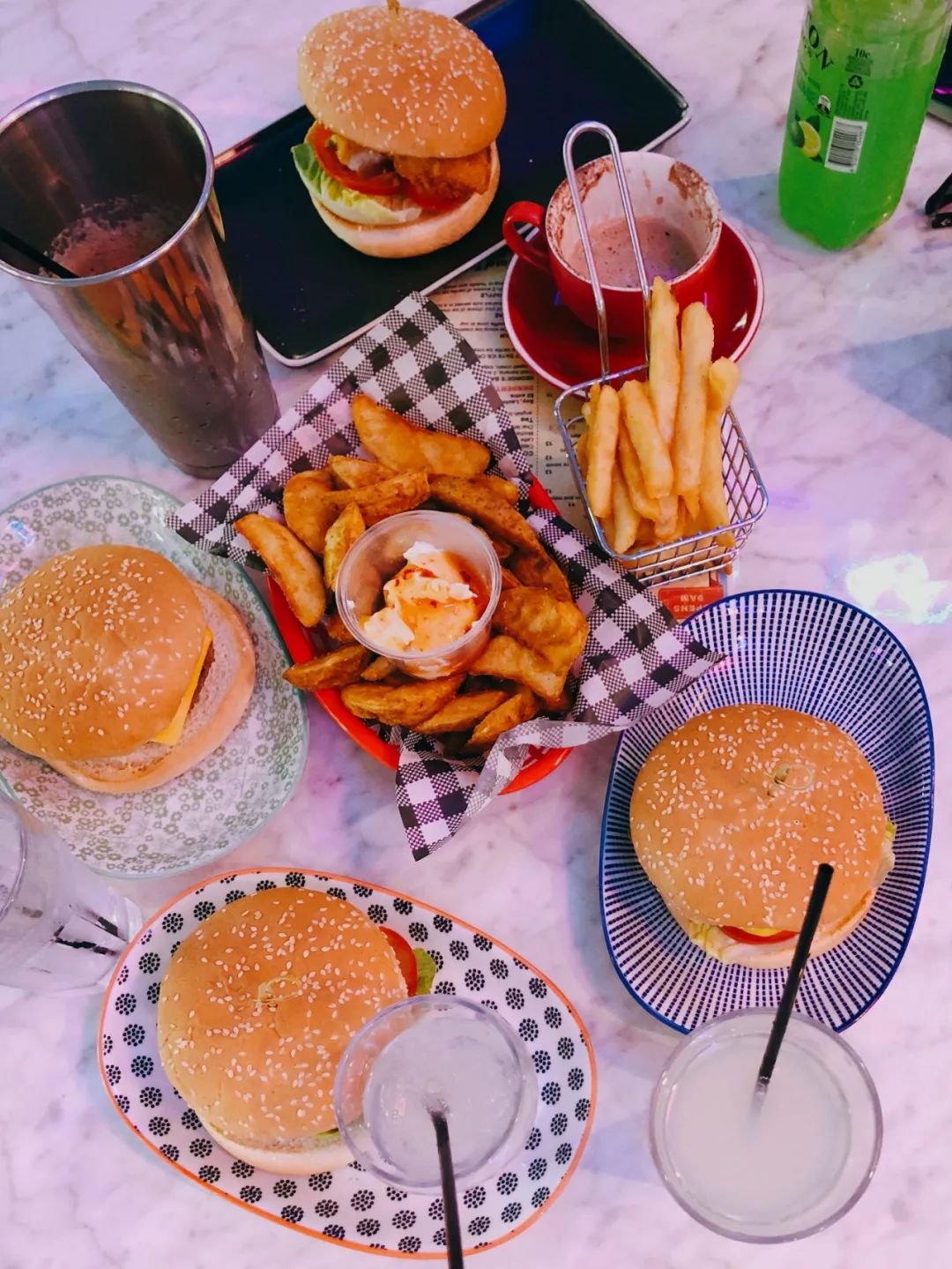 推荐Conway Beach不是因为这个海滩有多好看,是因为离这个海滩不远有一家叫George’s Diner的汉堡店。貌不惊人走进里面发现藏着大惊喜,像穿越到了八九十年代,经典复古车型、猫王雕像、贴满墙壁的车牌,就连桌椅都是大红色配上撞色的方块瓷砖,不得不为老板的复古情节与用心点赞。