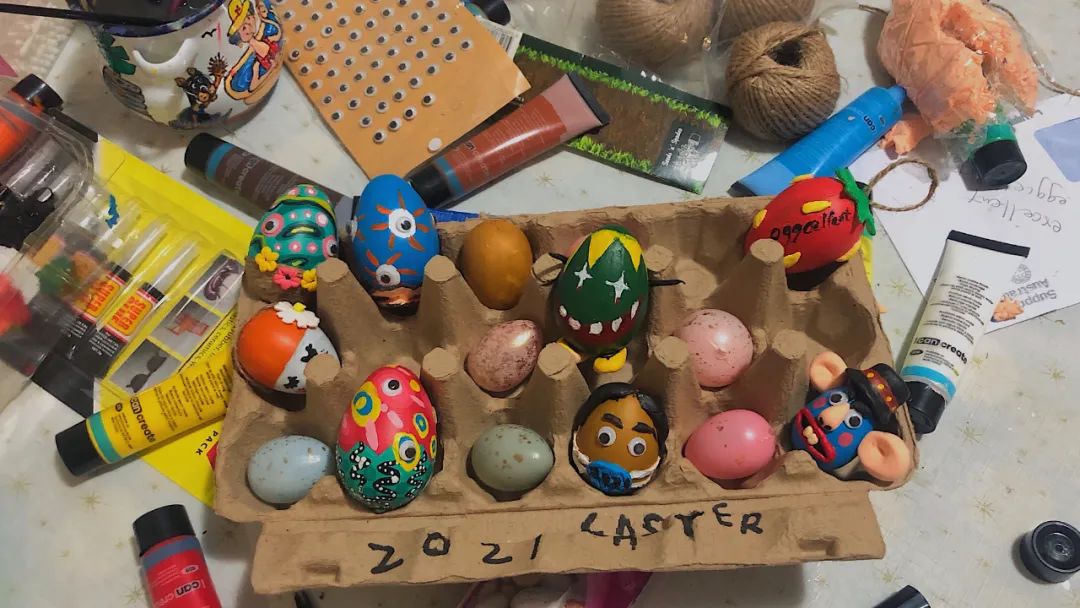 每到节日,我都会想做一些有趣又有仪式感的物件来庆祝。正好家里有用完的鸡蛋盒,我的舍友Soda又特别懂我地在二手店给我买来了塑料的蛋。复活节彩蛋workshop应运而生。