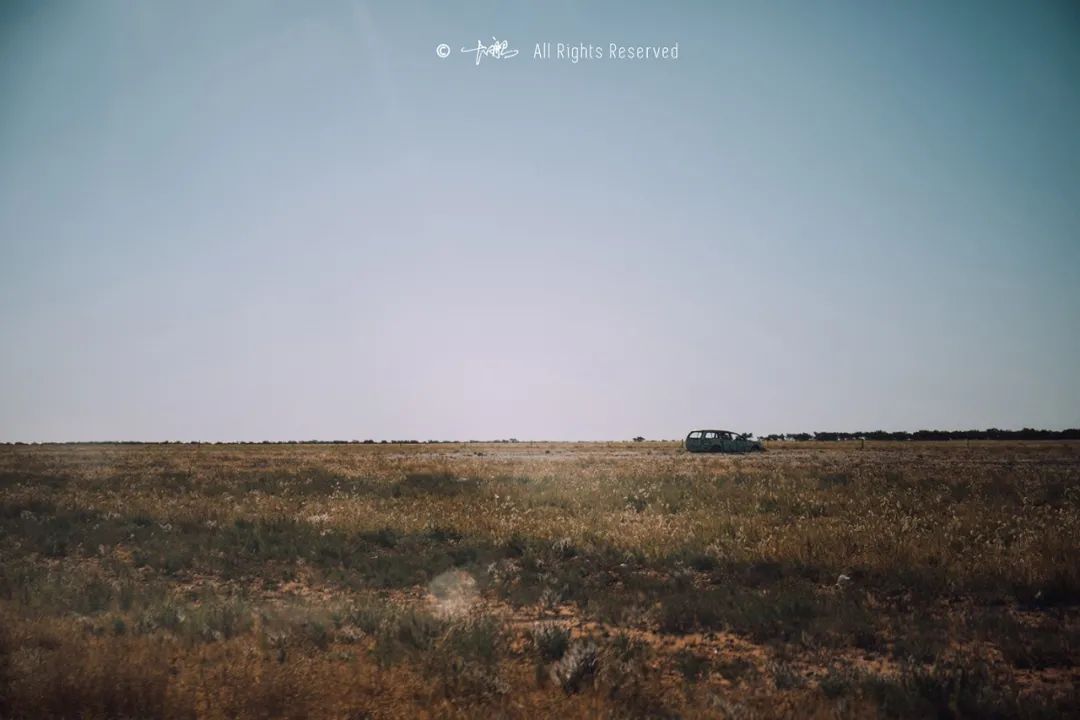 水泥铺装的路面时而浮出,哪怕经过了50米我们也会开心地庆祝,终于可以让身处在“洗衣甩干机”里的自己轻松片刻。每隔十几分钟见到一个铁栅栏,蜿蜒的土路消失在天际线,表明这是一个大牧场,土地有主。澳洲很神奇的一点就是,只要是有路的地方,路的两边必定是被铁丝网围拢的,可能早在几百年前就被开荒者所占为己有,也是,如不能长期拥有这么大一片的土地,谁会愿意生活在这世界上最孤独的角落里呢?