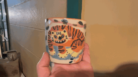 但是因为一个不留神,错过了捏马克杯的workshop,想着这下没办法参加了。谁知Mikaela立马联系了我,送给我了一个她制作好的空白的马克杯,并且把整箱的釉色送到我家,真是太感动了。