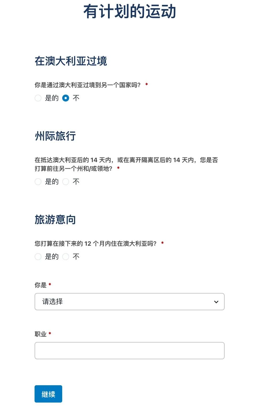 声明您了解抵达澳大利亚和您登陆的州或领地时适用的检疫和检测要求,以及不遵守规定的处罚。