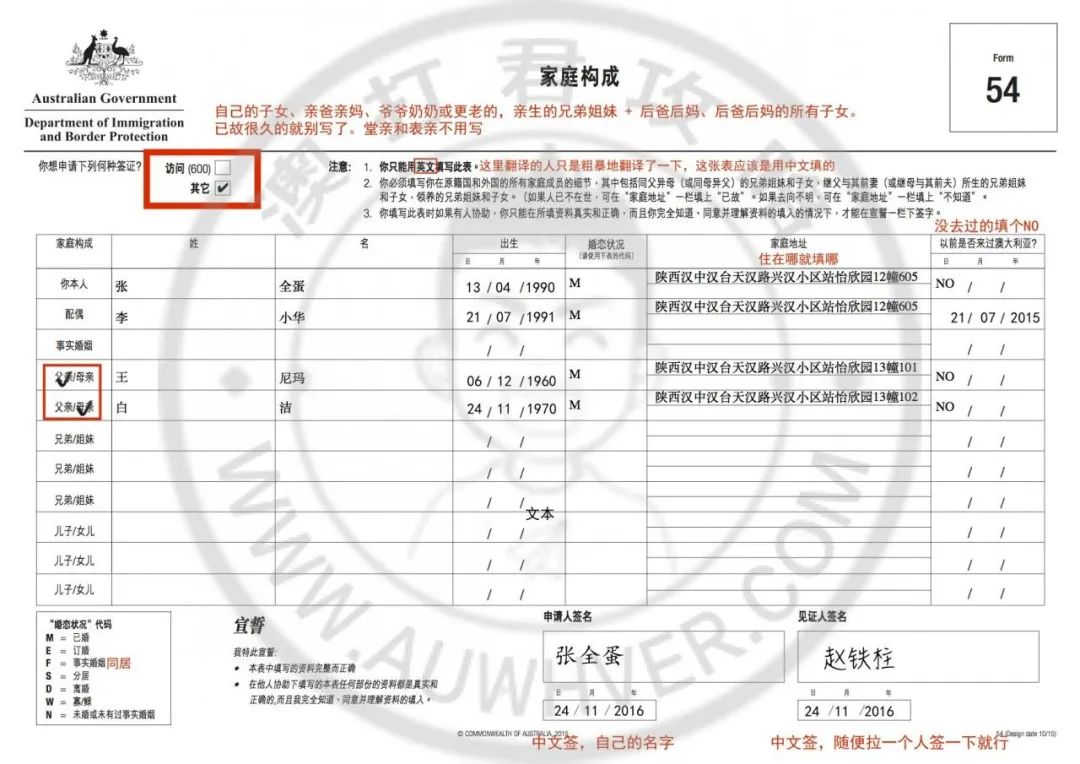 - 54 号表格–家庭成员表,澳洲官网下载地址:https://immi.homeaffairs.gov.au/form-listing/forms/54.pdf