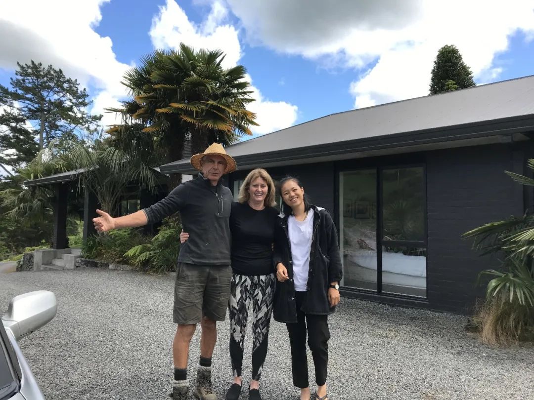 我在新西兰的第二家换宿是在北岛的Tanguga,之前在丹尼尔他们家的时候尽管看见了他们自己修建的木房子已经让我感到十分震撼,但我每天生活着的时候心里也总在暗想「或许因为丹尼尔是个非常厉害的建筑师,所以房子修的如此美观也不那么令人匪夷所思」。但是这次来到格兰达的房子后,我才彻底认同了新西兰人的动手能力。 第二次的换宿申请也别有一番趣味,第一次换宿已然深深感受到了新西兰人对于孩子的教育,第二次我想着不必非要需要家里有小小孩了,或许也可以尝试看看当地夫妻生活的样子。于是凭借着自己申请时填写的——我们会做十分美味的中餐,很快获得了嘉丽一家的邀请。 他们家也是在一片很空旷的山上,山上遍布树林和草地。由于先天地理位置的优势,让新西兰人都能过着一种非常与世隔绝但又十分有格调的生活。格兰达一家有五口人,和她的丈夫约翰,他们有三个小孩,最大的儿子距离他们住的不远,已经有了自己的家庭和后代;第二个女儿刚与一个英国人结婚不久,现在居住在英国;第三个男孩汤姆现在还在读高三,住在家里,马上就要参加“高考”了。我睡的房间是他们女儿的房间,非常舒适温馨。格兰达他们把我们当作了自己的女儿一般,每天除了大家一起上山工作外,其它时间会带我们一起去家附近玩,看萤火虫、帮我们做温泉浴,晚上的时候能够在室外泡在热气腾腾的大桶里,格兰达会往里头加一些味道很舒服的植物叶子,边泡澡的时候一边抬起头就能望见满天繁星。