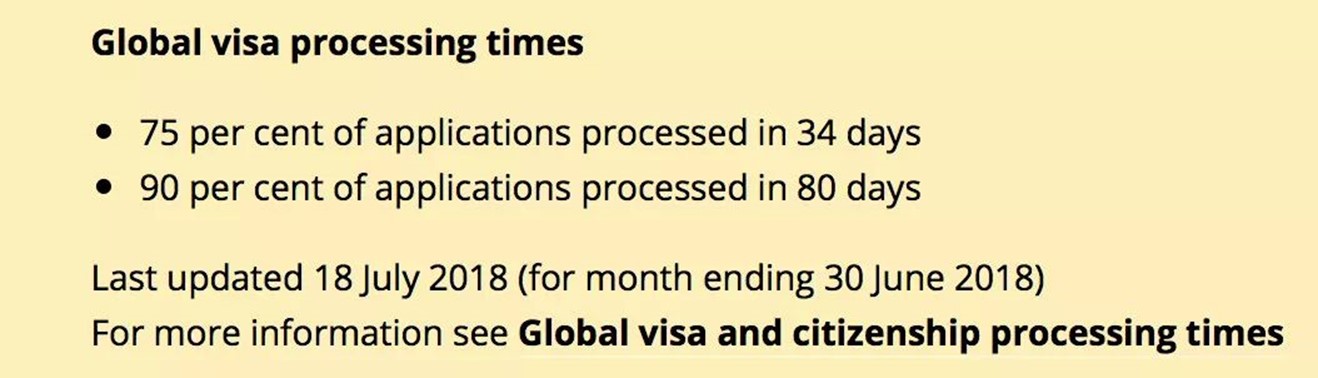 移民局的官网上标注着462签证审理需要的时间,这个时间是按照日历日来计算的,而在等待了一个多月之后还没有下签的朋友们悲剧的发现自己不是75%也不是90%,而是倒霉的成为了10%