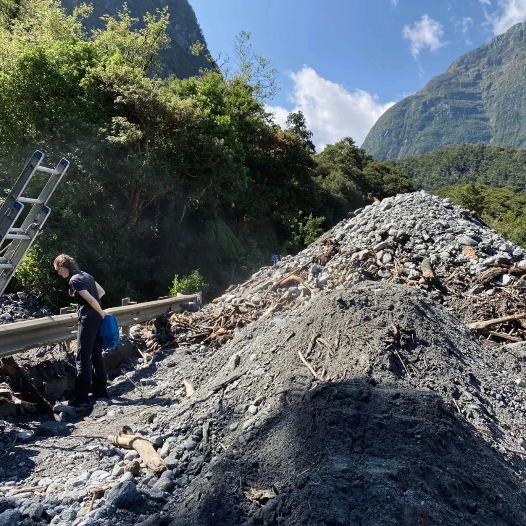 游客撤离后,很多问题都被解决了,峡湾各种物资的紧缺状态立马被缓解,即便大部分工作人员都无法离开,但基本生活有了保障。偶然看到了一架直升机吊着一辆mini小型挖掘机到了接待处,帮助恢复道路清理,远远看着像玩具车一样的红色挖挖机悠悠飞过来,又觉得好可爱。
