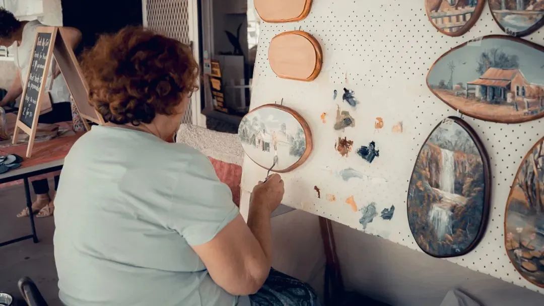 ▲周日市集上绘图的老奶奶