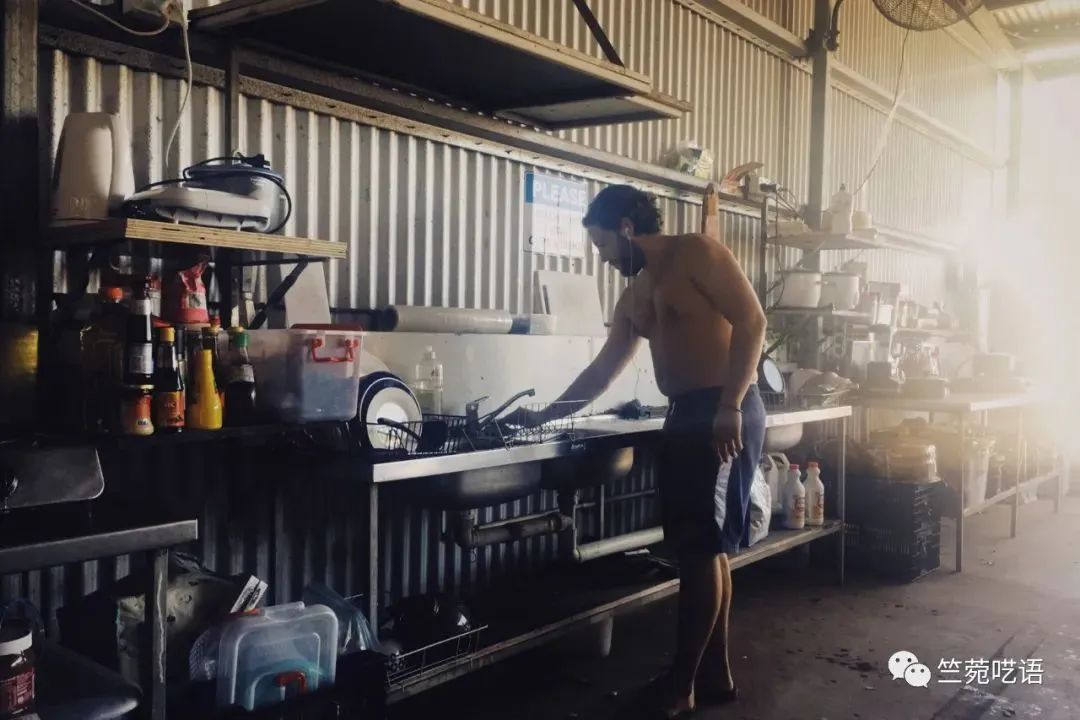 我跟Min猜测,也许这是老板娘给他安排的活儿吧?干活发工资的那种。可是后来他说,“反正也没什么事儿,听着音乐就做了,这是我们接下来一段时间生活的地方,需要保持干净啊。” 我跟Min呆呆地被他上了一课。