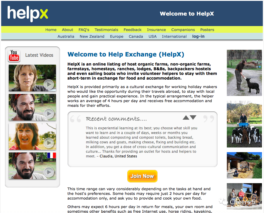 Helpx在2001年4月的时候由热爱穷游的英格兰人 Rob Prince 发起,以劳动换取食宿游遍全球,整个组织与 WWOOF 有些类似,但是相比之下,它的涵盖范围更广,几乎遍布全球。当地农场主会邀请 helper 给他们短期帮忙,一般情况下,helper 每天平均工作4小时,作为回报可以得到免费食宿。