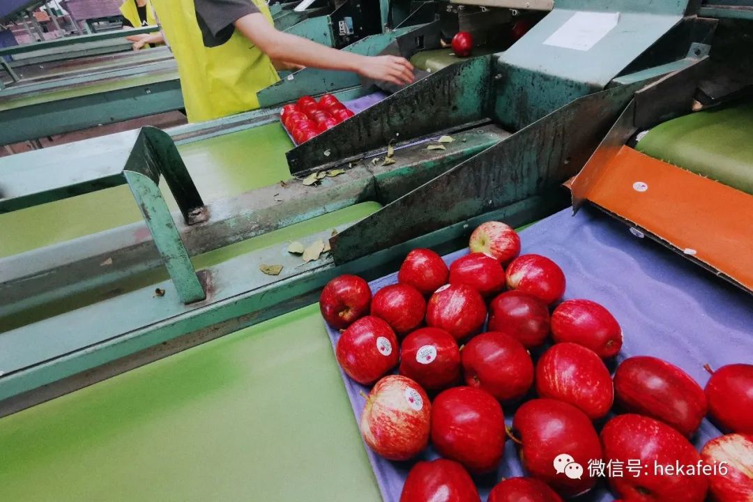 (苹果们经过“游泳池”的消毒清洗后送往packhouse进行包装)