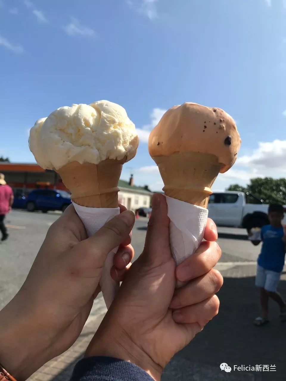 然后去到tiptop冰淇淋店里买了两个冰淇淋,愉快的一天开始啦,买的两个冰淇淋,一个香草味的,一个薄荷味的,一个3纽币,之前是2纽币的,涨价了啦,不过真的好好吃呀,好大的冰淇淋哦,各种口味,我都想试一遍过去。