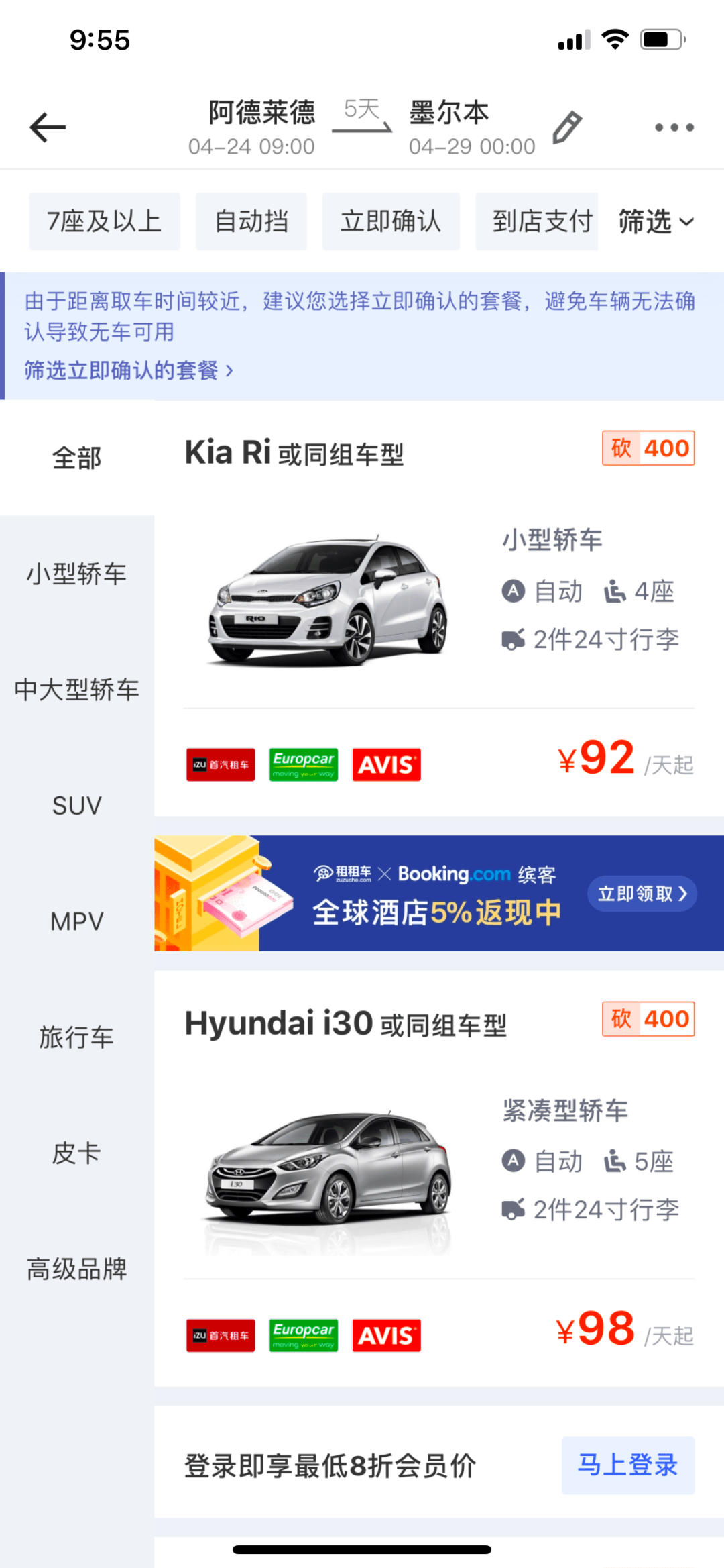 经过对比,最后选择了租租车。(不是广告,我对比了好几个租车网站,最后发现租租车的价格最合适,保险也不坑,可以选择0起赔额的全险,个人认为不必选择超级加强险)