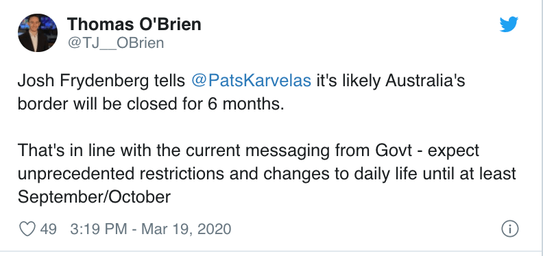 废话不多说,我们直奔主题,今天探讨和分析关于whv签证开放申请的问题,相信很多小伙伴很心急。 澳大利亚总理在昨天下午的新闻发布会中宣布,将目前的入境禁令将扩大到所有非公民和非居民,澳东部夏令时3月20日晚上9时正式生效。 获得豁免的有澳大利亚公民、永久居民及其直系亲属,包括配偶、法定监护人和受抚养人。 这一禁令意味着目前人在海外的学生签证和打工度假签证持有人无法进入澳大利亚。 目前已经在澳大利亚的签证持有者仍可待在澳大利亚。 1、19-20财年第三批名额原本开放时间 澳洲19-20财年已经发放了2次whv名额,根据历年数据,第三批应该在2月-3月之间开放,如果第三批不发,过了7月1号就是进入新财年,新财年重新配5000个名额,依旧是分3次发放。 2、影响这次whv名额方法的主要原因是什么? 据我推测就是新冠疫情,估计大家也猜到了。2月中下旬,中国大陆的疫情已经开始爆发起来了。 2月1日,澳洲政府宣布禁止所有在2月1日以后从中国飞抵澳大利亚的民众入境。 2月20日,澳洲政府宣布过去14天曾到过中国大陆的旅客将禁止入境。 3月20日,澳洲政府已经禁止非公民和永居入境。 理由1:澳洲移民局暂停了境外申请的旅游签 目前,移民局针对人不在澳洲境内申请旅游签的,全部暂停审核批签。 理由2:澳洲移民局暂停了申请人在境外申请独立技术移民的审批 因为有travel ban,移民局已经暂时不审理申请人在澳洲境外的189和190PR 签证。 理由3:在第三国中转曲线回澳的留学生 今年真是澳洲留学生最惨的一年,太难了,每年给土澳贡献那么多GDP,澳洲政府说ban就大家都不用回来了。 综上,旅游签、申请移民、学生签,这几个签证哪个不比whv签证重要(我指经济创收方面),都被限制了,所以疫情不好转,禁令不解,大家都很难过。 联邦财长Josh Frydenberg警告称,澳洲“封国”的时间或将长达6个月,在“安全”或疫苗研制成功的前提下才会解封。 总理表示,他做出关闭边境的决定是因为澳洲658例确诊病例中有80%来自海外。 Frydenberg无法确认禁令将持续多久,但表示澳洲可能封锁6个月。禁令将只在“安全”的时候或有冠状病毒疫苗之后才会取消。 3、澳大利亚会在六月份前解除禁令全面开放吗? 为什么说六月呢,因为7月1日就进入新财年了,没发名额第三批就是放飞机了。 上面说到预计封国会长达6个月,那就要等到9月底、10月才会解禁?我们继续分析。 基于中国应对疫情的时间及感染人数曲线情况,预测再过三个月澳洲禁令取消是有可能的。 现在不稳定的因素有两个: 第一,澳洲目前是准备入秋了,6、7月进入冬季,国内的疫情是在冬季爆发的,春天基本控制,但澳洲的冬季才刚来,冬季是流感最严重的季节,许多病毒集中爆发,对新冠难以控制。 第二,澳洲也是讲人权、讲民主、说自由的国家,澳洲人对口罩好像有歧视一样,他们认为戴口罩并不能防止健康人感染,只能防止病毒从患者呼吸道出来,所以在他们的印象中,只有病人才戴口罩。 相比于国内,国外的状况复杂得多,西方国家拖延症很强,意大利就是一个很好的例子,疫情在澳洲折腾到六月能不能结束,肯定没人敢打包票。 我们目前做的只能是能待,待疫情过去,待春暖花开。 当前澳洲的旅游业、教育、餐饮、航空等行业都是重创,很多人都已经失业了,目前就算能申请到名额进来,对于whv群体来说也不好找工作。 还没来的小伙伴真的可以趁这段时间,多提升自己的技能(可以是厨艺、各种谋生技能),练好语言,过来也不会吃亏。多学一样本事,就少说一句求人的话。 2020,注定是不平凡的一年,我的愿望是世界和平,人民安定。 相关文章 南澳最大农场是哪家?澳洲最新农场集团及下属农场名单列表 自驾南澳,满足你对澳大利亚的一切想象 土澳各州樱桃采摘工作资讯,樱桃杀手请收藏! 新西兰幼教毕业后的常见问题及解决 如何在澳洲找农场工作 澳洲打工旅行--西澳集二签的宝藏之地--Bunbury