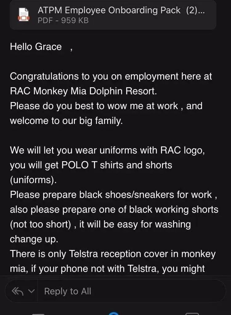 当你收到经理邮件以Congratulations开头的时候,祝贺你,你离成功入职MM还差几张表格的距离,这个不用怕,都是些基础的资料,RAC的度假村都是正正规规的大公司,虽然在东部大家没听过,那在西澳可是家喻户晓的,这时候你就要思考是搭飞机大巴还是开车了。