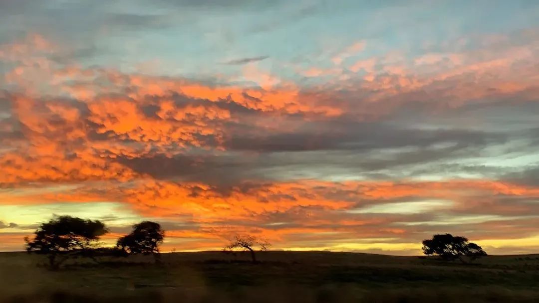 天边尽头从一到黄光开始划破寂静的夜幕,不久后是一片火热的渐变橘红点燃浅蓝色的天空。沿着人迹罕至的高速公路一望而去尽是一片荒郊旷野,竟有种末路狂奔的错觉。途中还偶遇到了清晨早起的袋鼠朋友们,感激你们的不撞之恩。