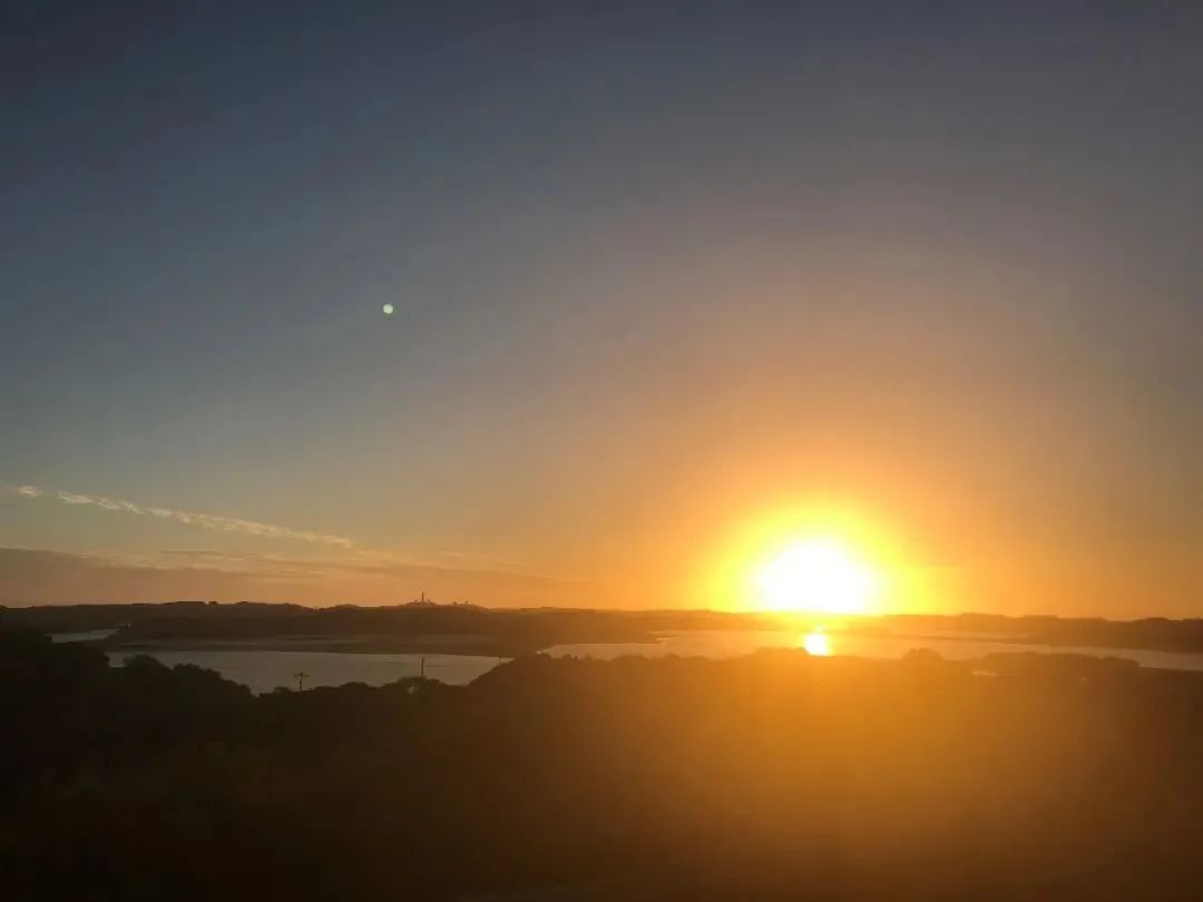 傍晚的时候我们时常会一起去看夕阳,那个地方好像是大家约定俗成的地点。只要下班后就会有人在门口喊一声,所有人就会一起出去。那个地方就好像是一个只有我们才知道的秘密基地,每天都可以在那里见到油画般的夕阳,那个最高点往下可以看到澄澈的一片湖水,湖水里倒映着夕阳的颜色。