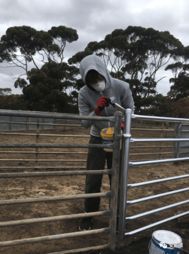 我们两个女生,拆桩速度实在太慢,于是Damien又找了个轻活给我们,就是给烧掉漆的围栏上新漆。