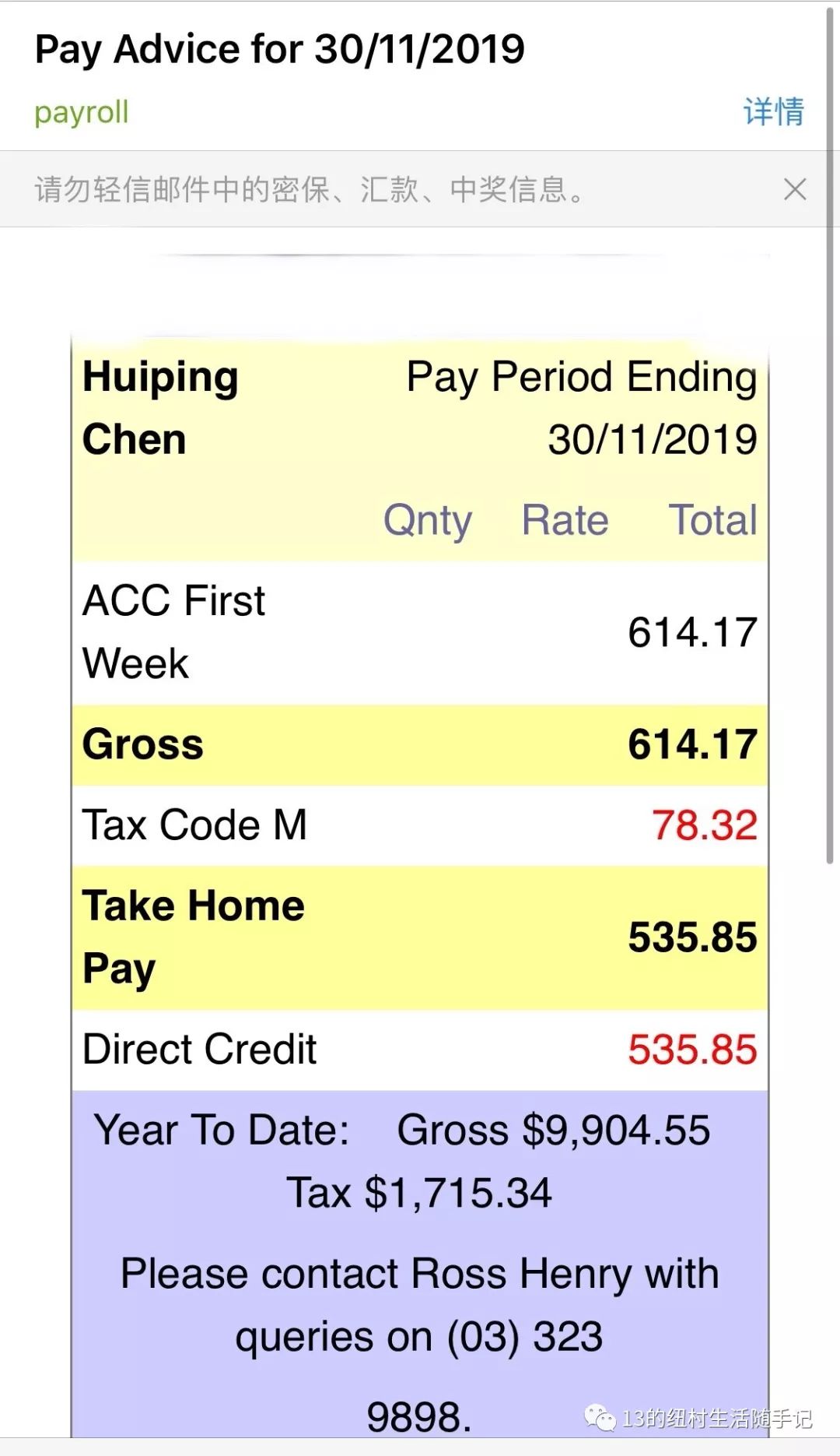 比如说,最近在ACC的协助下,顺利收到了公司补发的请假期间的工资补贴。虽然我在Working Holiday的第一份工作期间,就经历了其他小伙伴可能一年都碰不到的意外