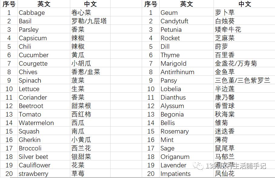 (学到的各种植物英文名称)