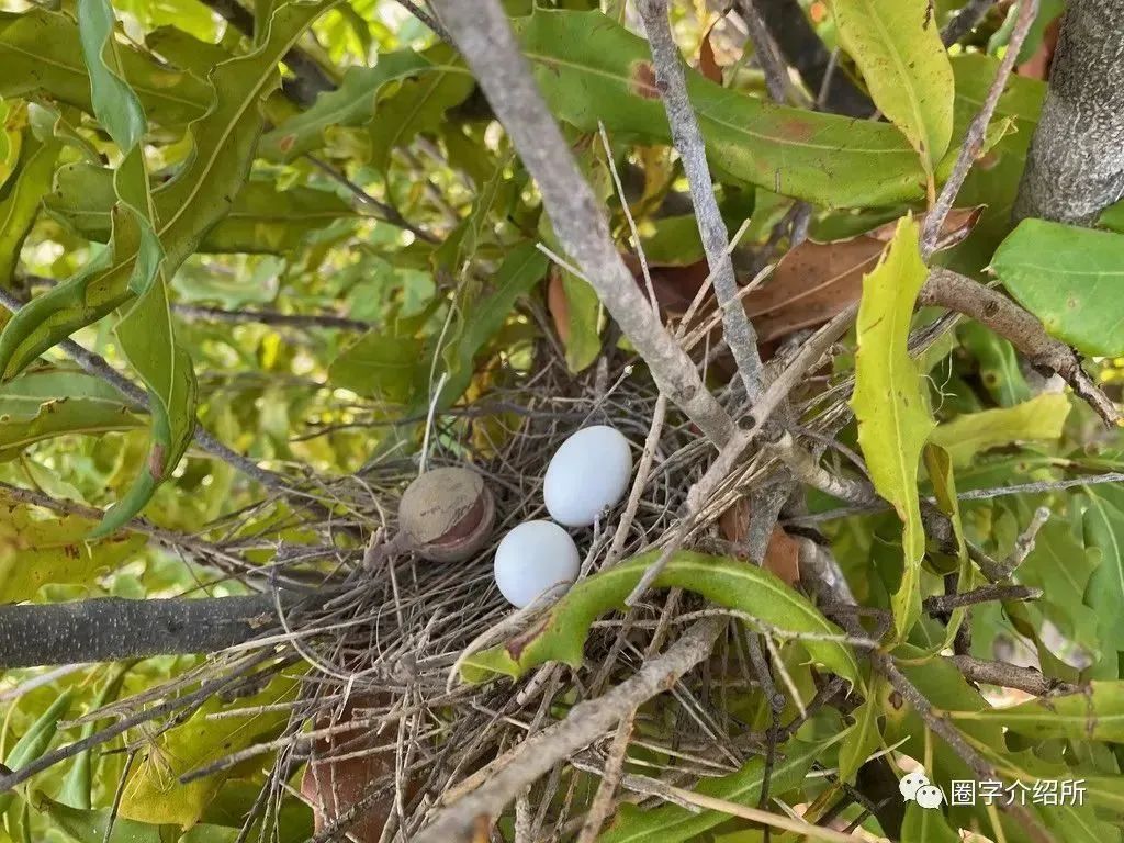 捡果子的时候还发现了在夏威夷果树上孵蛋的鸟妈妈,她可能误把坚果也当成她的崽了,所以鸟巢里一直都是两颗鸟蛋一颗夏威夷果,但一直到我们搬走也没有亲眼看到孵出的雏鸟,因为鸟蛋们消失了。
