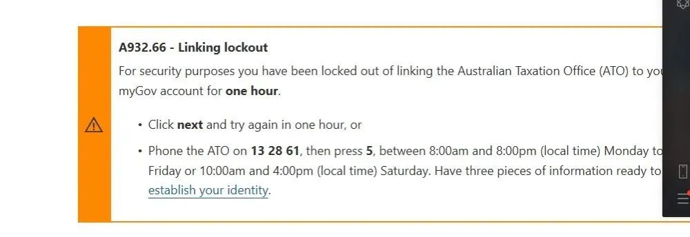 话术:「Hello,May I give you my TFN and please help me to linking mygov and ATO service?」 / 「Hello, i’d like to get my linking code.」(来自老包们的攻略指导)