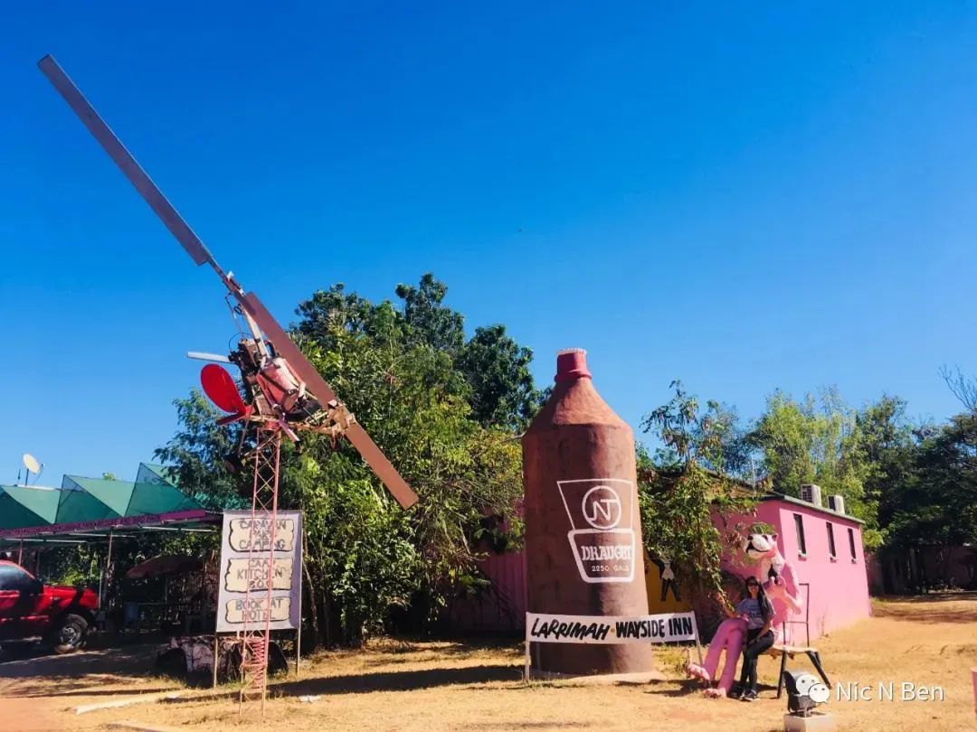 出发不到一个小时,停在了一个叫Larrimah的地方,伸展伸展我的老腰。