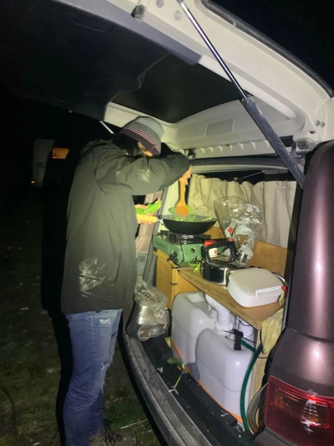 打开车门就可以躺在被窝里看海看雪景看原始森林了哈哈。有好的睡袋和被子就不会冷,我也买了热水袋晚上暖脚。