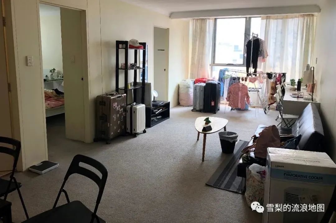 两室两卫,隔壁是Daiso Japan,步行5分钟到central station,步行三分钟到通利超市和Woolworth,10分钟到Coles,这个地段感觉已经是在宇宙中心……客厅比较大,放了四张电脑桌,我每天的习惯就是在客厅上网,困了再回屋睡觉。过了一个月,我们的租金降到了每人666刀一个月,我们内心都盼望着,她们还是别回来了,我们能再住的久点……