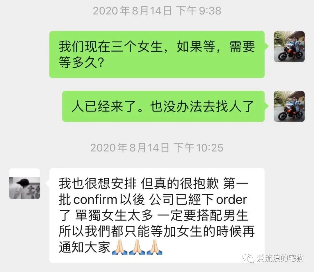 新包小Y:我八月初联系的一个芒果中介过来的,她说我来了能马上上班,所以我毫不犹豫买了500$的机票从昆州买达尔文的机票。结果才刚下飞机,工头说要等工,现在芒果还没熟。我等了一个多星期,没有多少钱,没办法跟他们耗下去。真的很生气,在房间里面哭了两天。 新包小J:我是听说芒果季节很赚钱的。我就过来了。结果来了一个多星期,就上了一天班,5个小时。工头说没开工之前,可以免费住在Farmhouse,问题是Farmhouse很偏远,我没有车,哪也去不了,也没WIFI,只能天天干等。太坑了。 杨**:我们本来在南澳的工厂工作,也是周薪破千的,就是这个Liya,忽悠我们芒果时薪更高,工时更长,结果来了才说没开工。那干嘛“拐”我们过来?我之前的工作不香吗?她每次说再等6~7天,再等2~3天,结果我们等了一个月,还进不去。 M:我就是其中一个被坑过来的,来之前中介说得天花乱坠,说来到马上就能上工,来了之后各种刁难,一时说要人在达尔文,一时说要绑男生,一时说要有芒果包装经验的,工作没给反倒是个人资料全被她们套去了。 E:芒果包装都是要排队的,工头都是随缘给女生工作,看谁反抗最凶,等最久,就给谁位置。男生一直无限缺人,因为外场工作很变态。真的,我去过几天,很多女生都是Dayoff,天天找工头。每天催,催久了缘分到了,就给你排到了。 来了达尔文之后我才发现大家基本都是被坑过来的。我和朋友联系的这个工头Liya,7月份就开始在各个群里面招人。还说北领地要封州了,让我们尽快过来,尽快上班。大体沟通过程如下: *部分聊天记录 7月24号 从微信群加她,当天确定工作,并提供个人基本信息和TFN号。 7月27号 Liya在她拉的包装群里说,8月15号开工。北领地可能会封州,最好尽快来。于是我们立马提出辞职,约两周后离职。 7月30号 Liya索要护照和现持签证的电子档。 8月14号 我们到达凯瑟琳,也就是达尔文的前一站。联系她,她说:“不好意思,第一批包装的人数已经满了,第二批第三批已经有二三十个女生在Standby了。需要有同行男生才行。但是现在越来越严了,甚至带了男生也进不了。你们可以来,但不确定要等多久。” 说真的,本来准备到了就工作的,听到这话挺懵的,但无耐已经来了,还是压住情绪找解决方法。 我:“好的,那你之前说住农场不要钱,那农场地址在哪呢?” Liya:“免费住的前提是农场已经Confirm你了,你们只是On List,所以暂时不行,带男生的优先。 所有的这些前提条件,在我们来之前她只字未提啊。 8月19号 Liya说如果有实际的芒果包装经验,在9月初会有15个女生包装位置。我质问明明是9月初,为什么要说8月15号开工?而且还必须有芒果包装经验。她说:“不止是你们在等,大家都在等,农场是根据天气吃饭的,果没熟我们也不能采。你们提前来是有好处的,机会是留给有准备的人的。”。最终我们决定等工,她建议我们先去农场住,30$一周。几小时后后她又说老板说没开工前不能住。 8月21号 因为我去游泳了,没接到Liya的电话,两个小时后回过去她说不好意思,我没接她就找别人了。 明知我们在等她的工作,还以我们没接电话为借口,所以我们要全天候随叫随到是吗? 8月22号 Liya说这十天八天内一定开工,也就是月底之前安排我们开工,但提前是一定要住在那个30$的Farmhouse,要一直做到季节结束。工时可放心,三个农场的芒果,全达尔文包芒果首屈一指,旺季周薪1600刀保底。并再次索要个人信息。我们也确定过去,但她说不可以提前入住,要我们在旅馆再住一阵子。我让她给句痛快话,到底8月底能不能上班,不行的话我们就找其他工作,她说可以上班。 8月30号 Liya再次要护照和签证电子档。她说之前的她没保存。我好奇:不是一直在帮我们留意工作的人,那为什么连我们发过的资料都没保存?一直反复反复地提供。这些都是个人隐私啊! 挺后悔当初相信她,把资料发给她的。一些黑工头靠收集背包客的个人资料贩卖,可能会导致背包客报税的时候要莫名其妙交一大笔税。 8月31号 月底了,并没有开工,Liya再次说我们可以9月2号上班。不过我朋友约了3号的体检。Liya回复,那干脆你们一起4号上班,等你朋友体验完,这样比较好。并建议我们住在农场。 我们一直想去她说开工前不让住,一开工又强迫马上要搬去。 9月3号 再次让我们搬去农场,变成90$一周,说是因为是不同的农场。并说不搬过去就不能4号上班,需要再等几天。 有没有对一个人绝望的感觉? 本来打算把Liya这个名字马赛克的,但是她说她敢打字,就不怕截图,所以我也没必要遮掩了。或许有些背包客因为她有了工作,但大多数人是在无限等工,一拖再拖。老包如我还有存款慢慢跟她耗,新包更绝望。 发问:今年的芒果季节晚了点,10月份才是旺季,为什么要7月份就开始招人???背包客赚的也是一点辛苦钱,为什么招工的时候不说清楚情况?好让我们决定到底要不要来,而不是被“坑”过来。 道貌岸然还自以为没问题的人,你的良心不会痛吗? 嗯,你没有良心,所以不会痛。 投稿微信:adj-helper3 相关文章 西澳Busselton:驶去天空的海上小火车 自驾南澳,满足你对澳大利亚的一切想象 5 分钟了解打工旅行生活安全 WHV转学签选中介不谨慎,分分钟坑哭你! 南澳最大农场是哪家?澳洲最新农场集团及下属农场名单列表 在世界尽头呼唤爱 — 心形礁21天骑行记 打工被坑 黑心工头