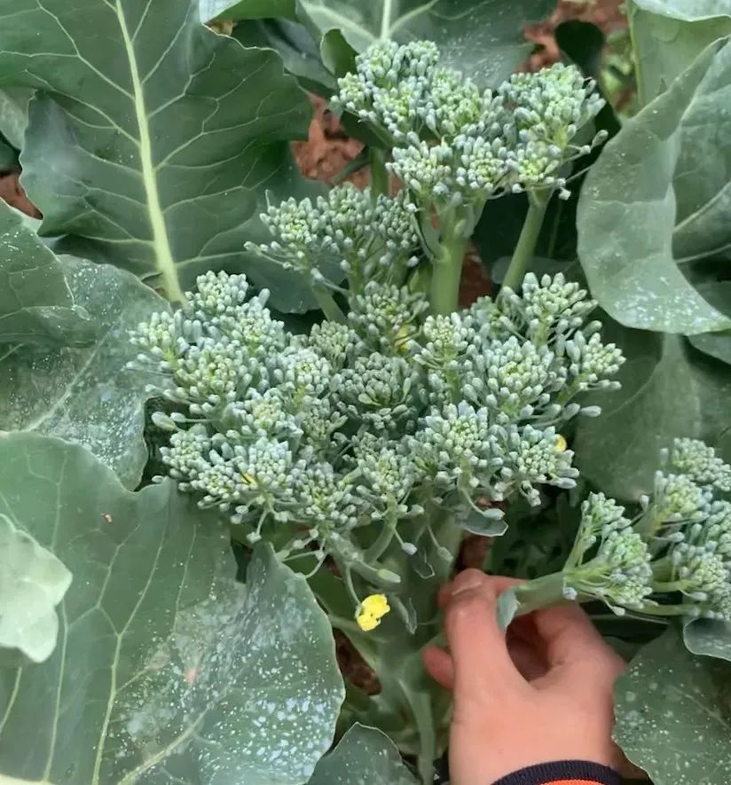 小花椰菜刚成熟时,会在中间长出一棵“头”,可采时呈分散状,并且会抽高,达到足够长度的就可以把它们折下来,并且把头断干净。